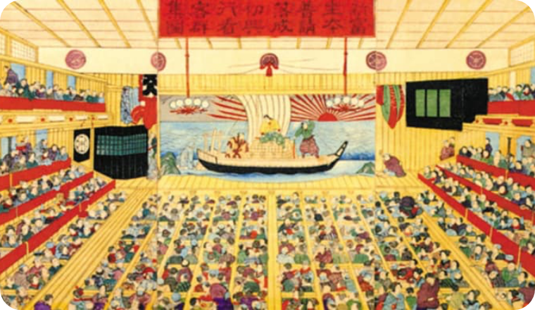 There is one more story behind the trademark registration. Matazaemon IV held massive corporate mark unveiling events in various locations. The 1888 Tokyo unveiling was particularly memorable. He rented the wildly popular Shintomi-za kabuki theater for an entire day and invited 1,500 customers to a kabuki performance.