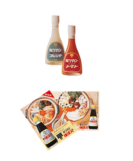 Quickly identifying changes in eating habits, Mizkan developed new products such as Ajipon™ (citrus seasoned soy sauce), dressings, Chinese seasonings, and Omusubiyama™ (furikake rice seasoning), and successfully launched them one after another. Matazaemon VII turned the Mizkan Group into the all-around food company it is today.