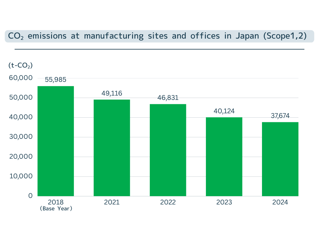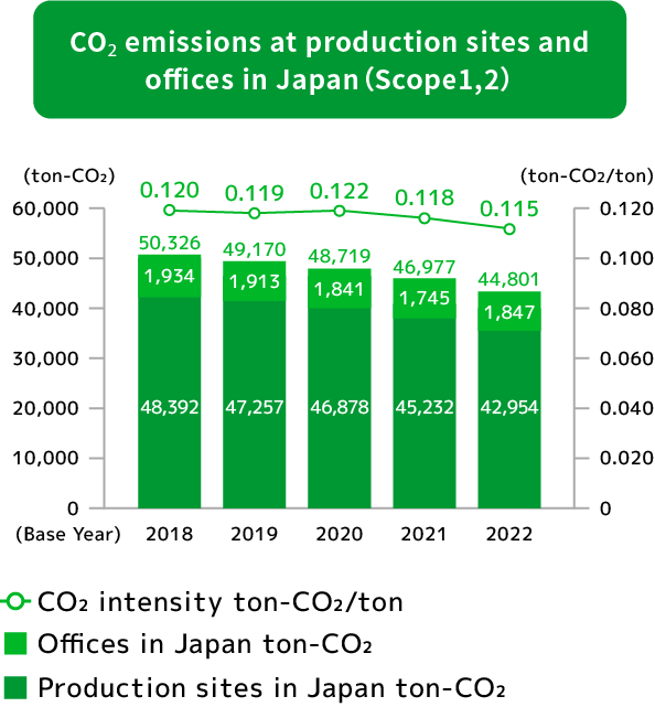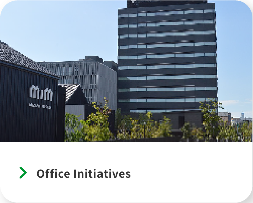 We are making a company-wide effort to reduce CO₂ emissions. Production and logistics are especially energy intensive, so we are focusing on improving eco-efficiency in a way that is suited to each field. When we redeveloped our head office, we made use of our location along the river, and put in place systems and technologies to reduce CO2 emissions.