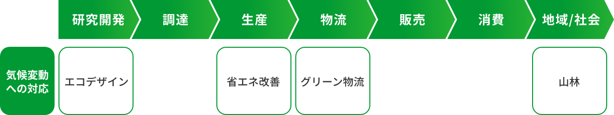 特にエネルギー消費量が多い生産活動と物流活動では、事業特性に応じた環境効率の改善に重点をおいた省エネルギー活動を推進しています。また、オフィスにおいても本社地区再整備時に地域特性を活かしながらCO2排出量を削減可能なシステムや技術を整備しており、全社的にCO2排出量削減に向けて推進しております。