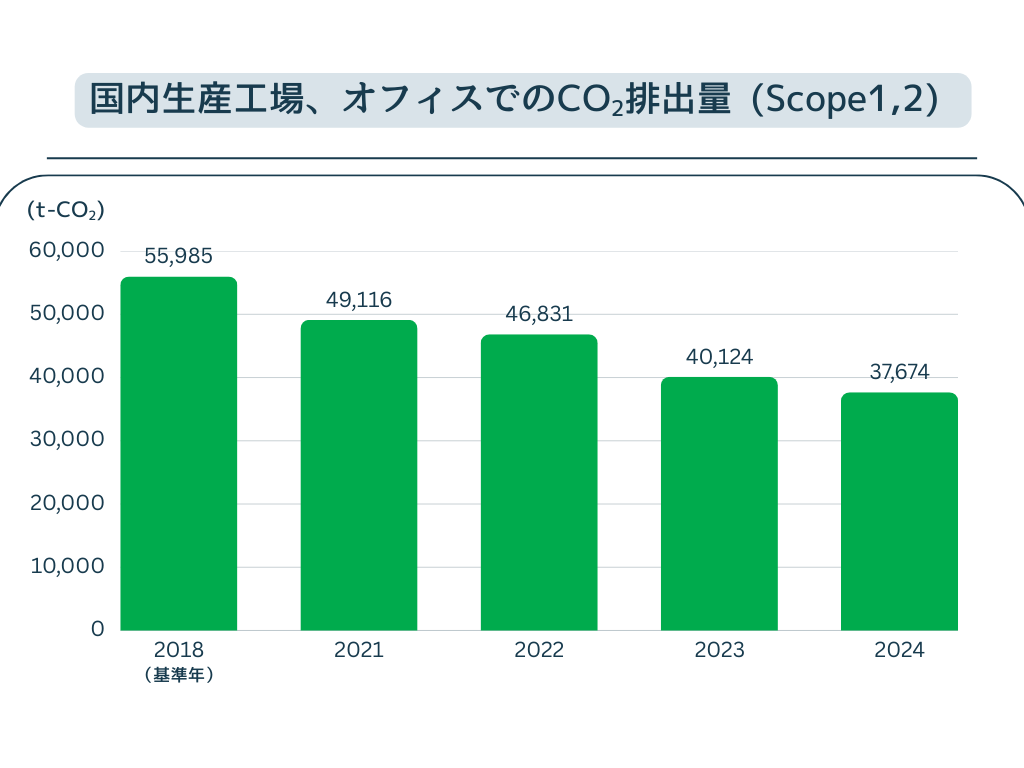 CO2排出量 2024年度:37,674トン(2018年比 33%減)